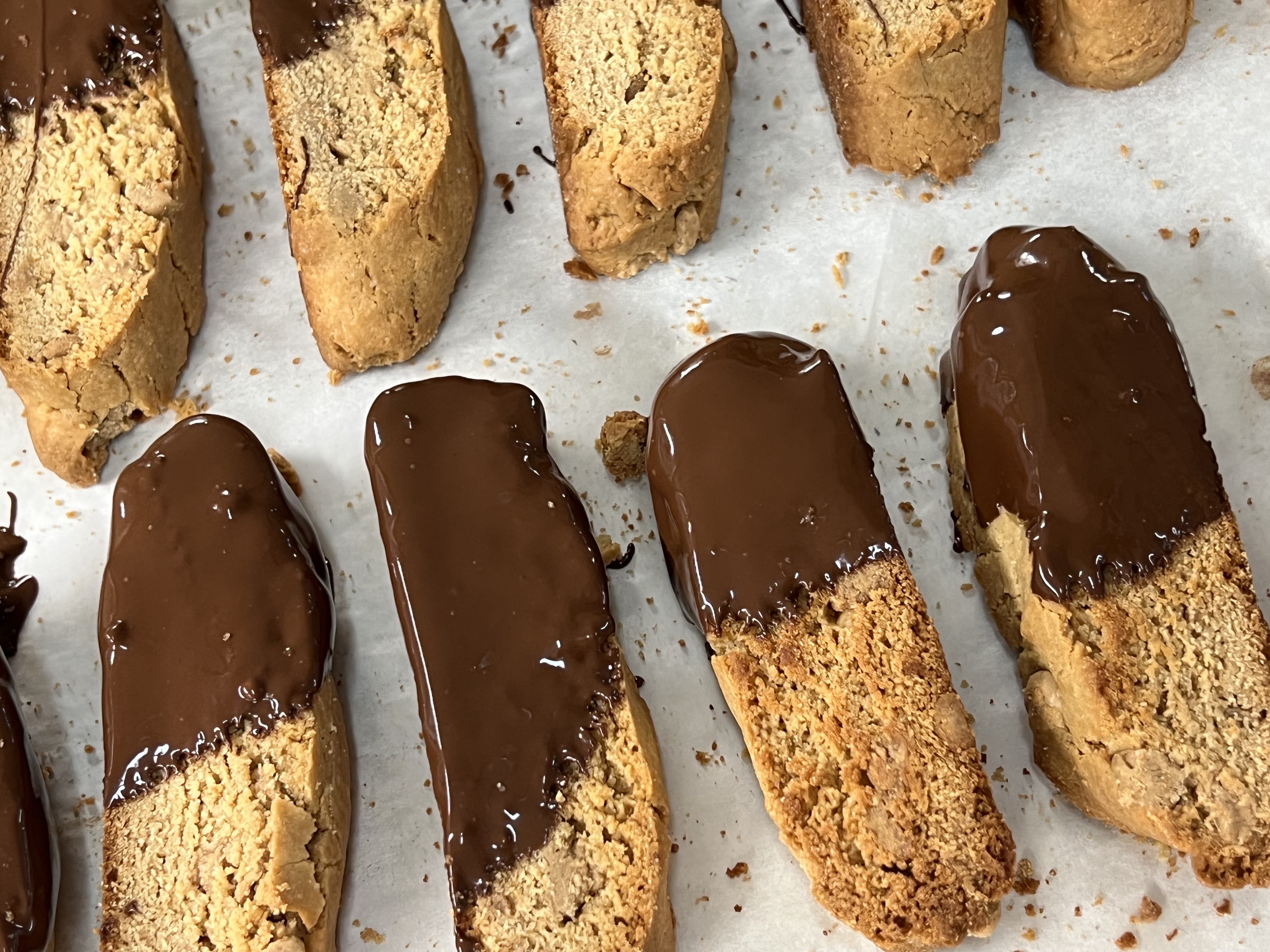 Chocolate Dipped Toffee Butterscotch Biscotti
